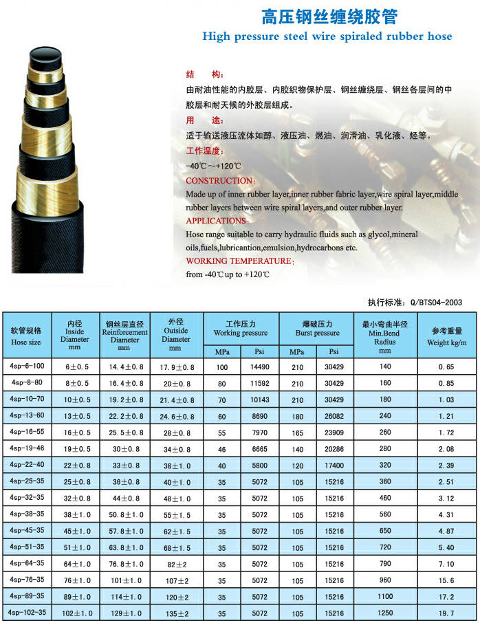 什么是高壓鋼絲纏繞膠管? 高壓鋼絲纏繞膠管,高壓鋼絲增強(qiáng)液壓膠管主要用于礦井液壓支架、油田開發(fā),適宜于工程建筑、起重運(yùn)輸、冶金鍛壓、礦山設(shè)備、船舶、注塑機(jī)械、農(nóng)業(yè)機(jī)械、各種機(jī)床以及各工業(yè)部門機(jī)械化、