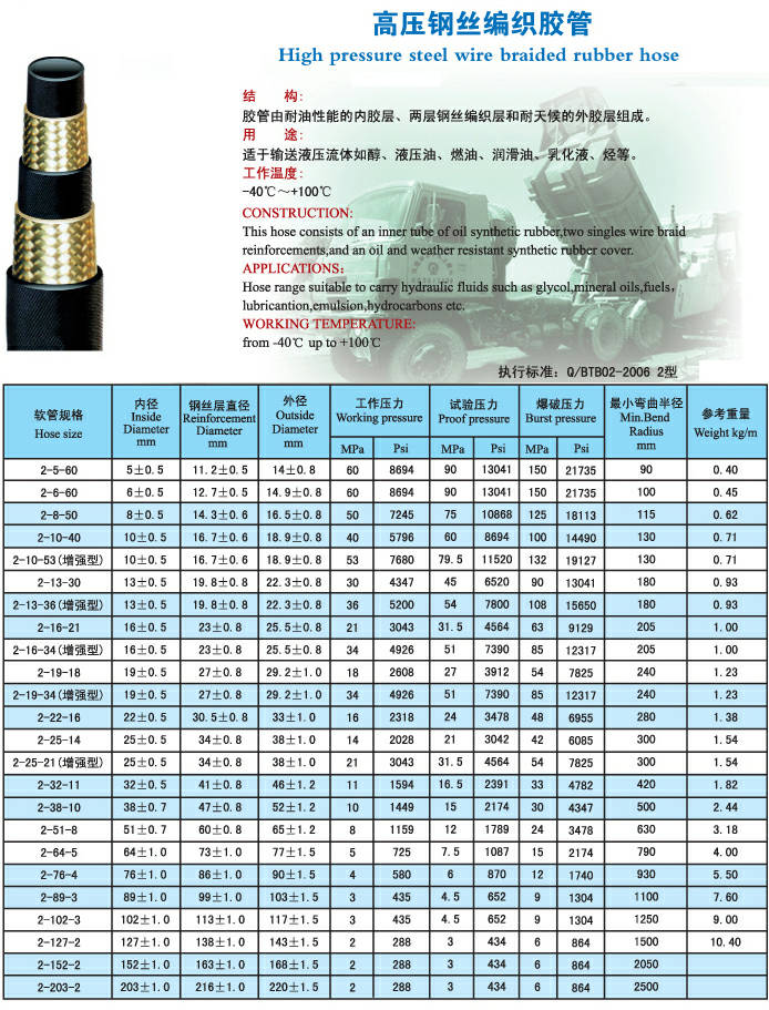5.鋼絲編織膠管長度大,φ32以上定尺為20米,φ25以下可連達十米甚**百米以上。